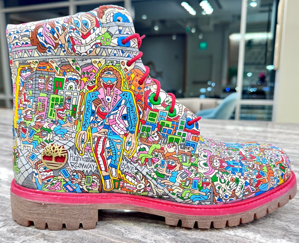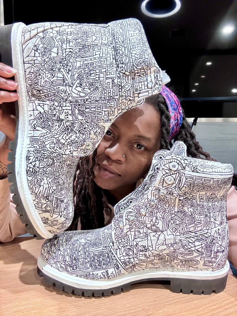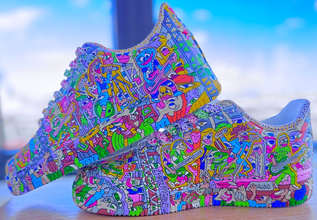 Christy creates from flashes of vision, bringing cARToons into this world line by line until each surface becomes a portal. What feels trippy at first glance becomes deeply structured up close.