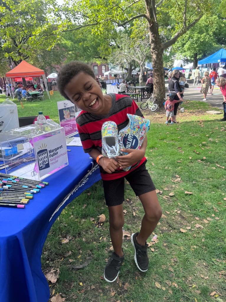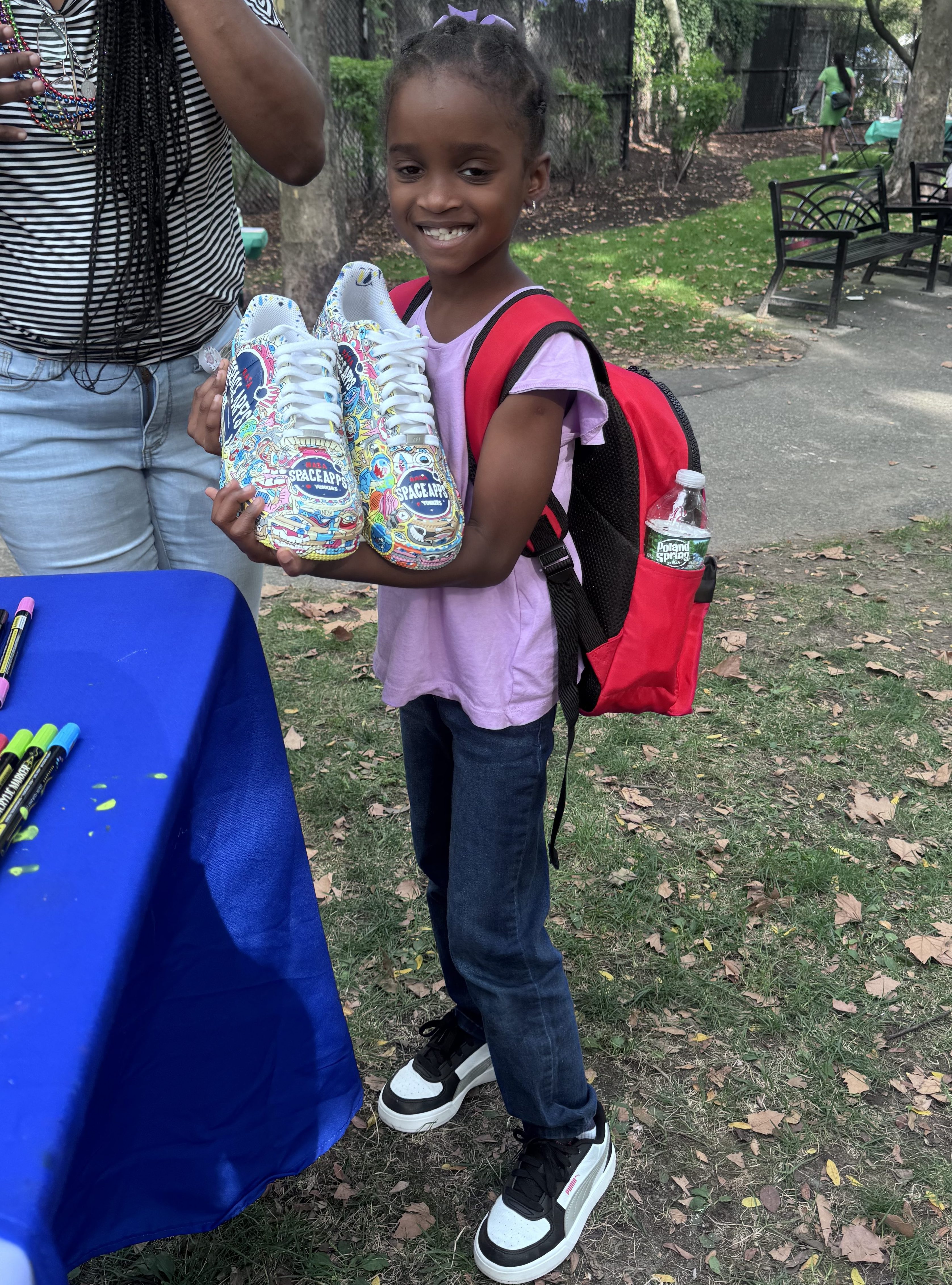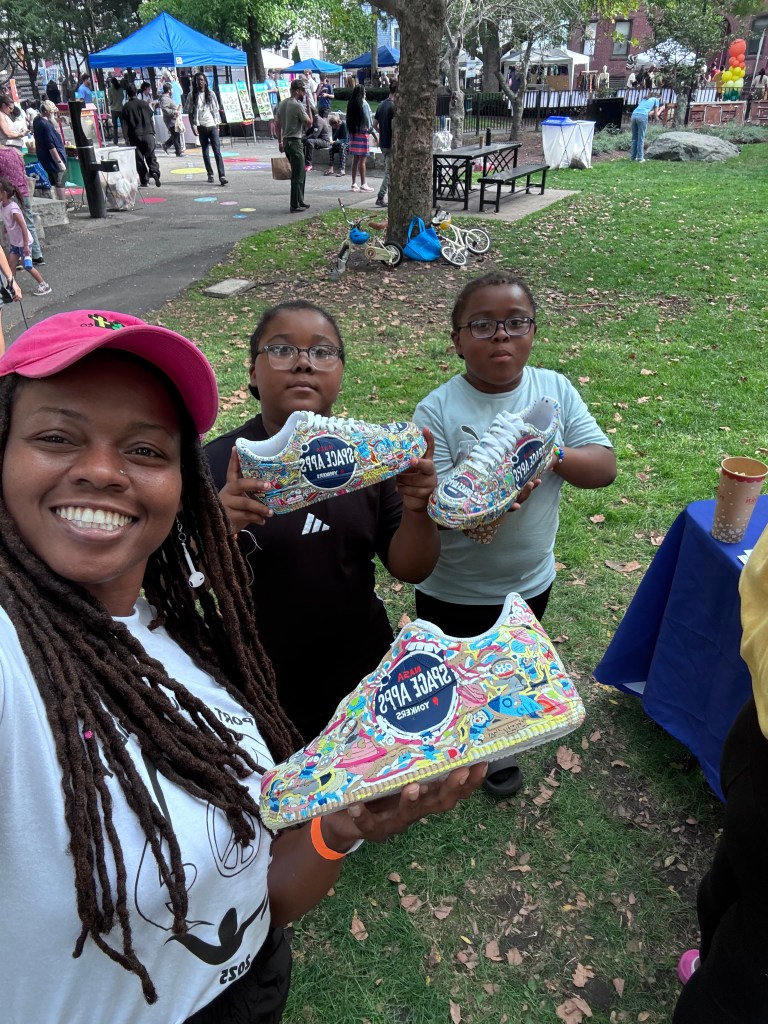 Art with Christy offers hands-on workshops for children ages 3 to 17. Kids express their creativity by painting footwear using high-quality acrylic paint. Participants may bring their own sneakers or have them provided.